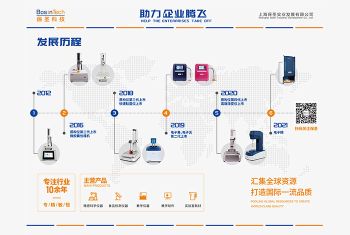 主要產(chǎn)品有:流變儀、質構儀(物性測試儀)、電子鼻、電子舌、電子眼,快速粘度儀,GC-O, 嗅聞儀,整體感官實驗室,感官分析軟件等。保圣產(chǎn)品堅持高品質,因此贏得了良好的口碑、加上優(yōu)質的服務使得公司產(chǎn)品暢銷國內各大高校、研究所、食品、藥品企業(yè)。 并獲得了高度肯定。